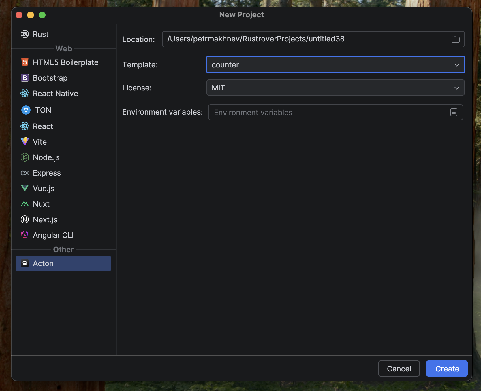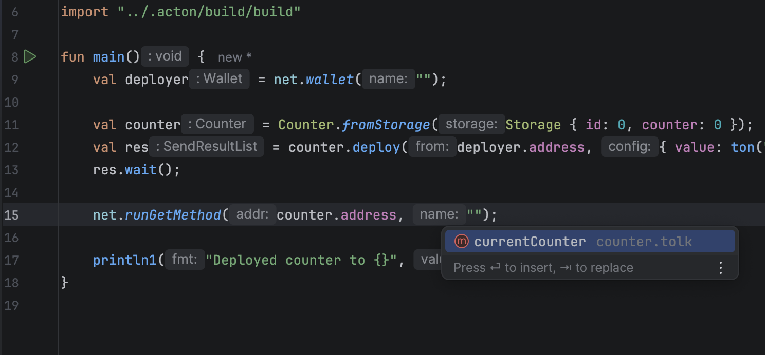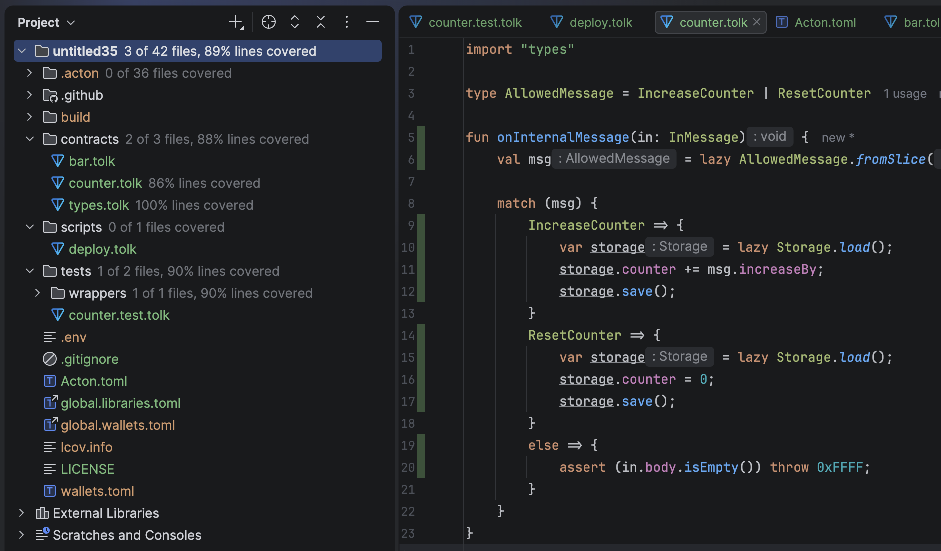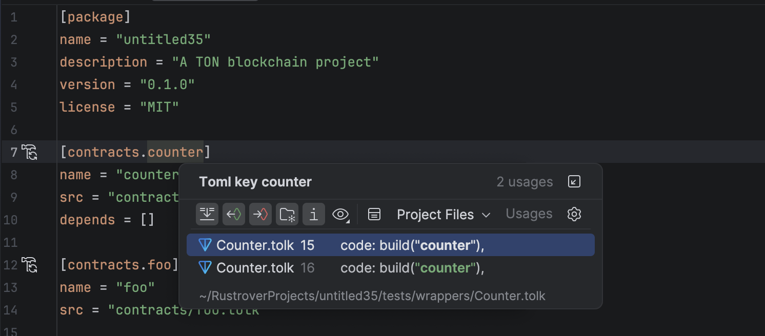 The TON plugin for JetBrains IDEs supports Acton development, providing project automation and toolchain integration.