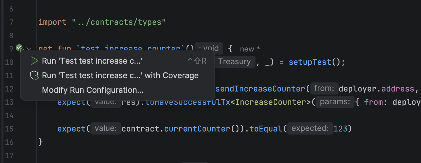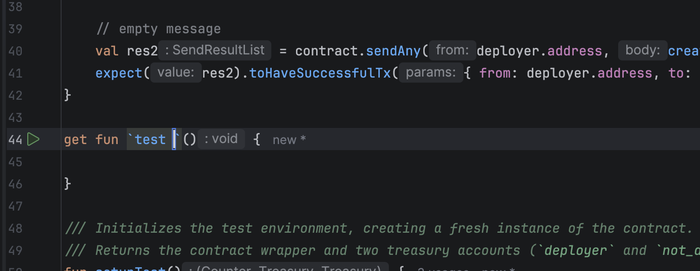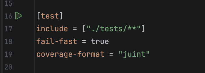 For convenient execution, the plugin provides a test run icon in the editor.
