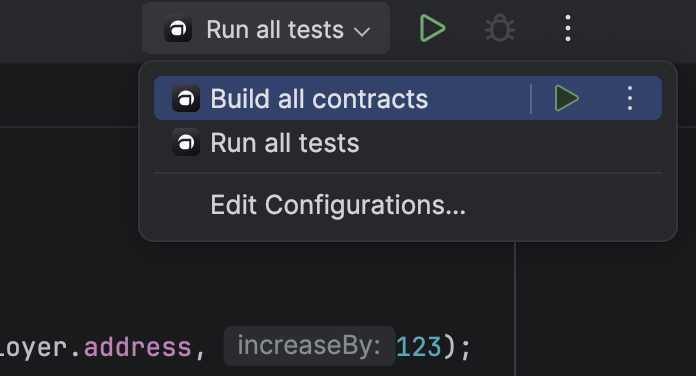 After creating or opening a project, the plugin automatically adds run configurations for tests and builds.